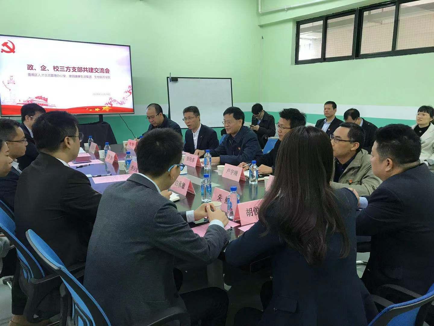 为深入学习贯彻习近平新时代中国特色社会主义思想、党的十九大精神和国务院办公厅《深化产教融合的若干意见》,加强党的基层建设,积极创新基层党建工作载体,深化政、校、企三方支部共建,11 月 29 日上午,番禺区人才交流管理办公室与奥园健康生活集团赴bevictor伟德官网开展支部共建交流会。会议在科技南楼407会议室召开,由学院党委副书记张智主持,出席交流会的有番禺区人社局副局长刘晓琨,番禺区人才交流管理办公室党支部书记、主任招业斌,广州市政协委员、奥园健康生活集团常务副总裁苏波,奥园健康生活集团副总裁白承敏及bevictor伟德官网党委书记徐向东、执行院长赵肃清、副院长卢宇靖、副院长郑杰。 赵肃清首先介绍了学院人才培养、专业建设、科研与社会服务等情况,希望能够通过三方党建共建,在人才交流、科研成果转化等方面深度融合、协同发展,充分发挥三方培育人才、科技创新、服务社会的功能。 徐向东对番禺区人才交流管理办公室与奥园健康生活集团一行的到来表示热烈欢迎,并指出高校人才培养需要行业国际视野,行业发展需要人才推进,两者相互促进和调节;他希望三方立足自身优势,在大健康环境下,将人才培养、创新创业与企业发展、行业需求有机结合,在实习实践以及在校创新等方面开展全方位合作,为人才培养探索新路径。 招业斌表示为企业与高校服务是政府职能部门的义务与责任,是人才交流办的服务所在,三方共建实现了优势互补和相互促进,希望三方在党建共建做出实效。 苏波介绍了奥园健康生活集团商业理念与业务范围,通过线上线下相结合的一站式医疗服务平台,打造全龄化健康生活方式,主要涵盖医学美容、中医康养、健康产业咨询等业务,希望未来三方人才联动,合作共赢。 随后共建三方参观了bevictor伟德官网专业实验室及科研平台,卢宇靖对实验室的仪器设备进行了详细的介绍。 在交流会上,共建三方就后期如何开展共建活动,如何发挥共建的优势作了明确的规划和详细的安排。此外还重点就产研融合、党建标准化、社区养老、乡村支教等方面进行了深入探讨。