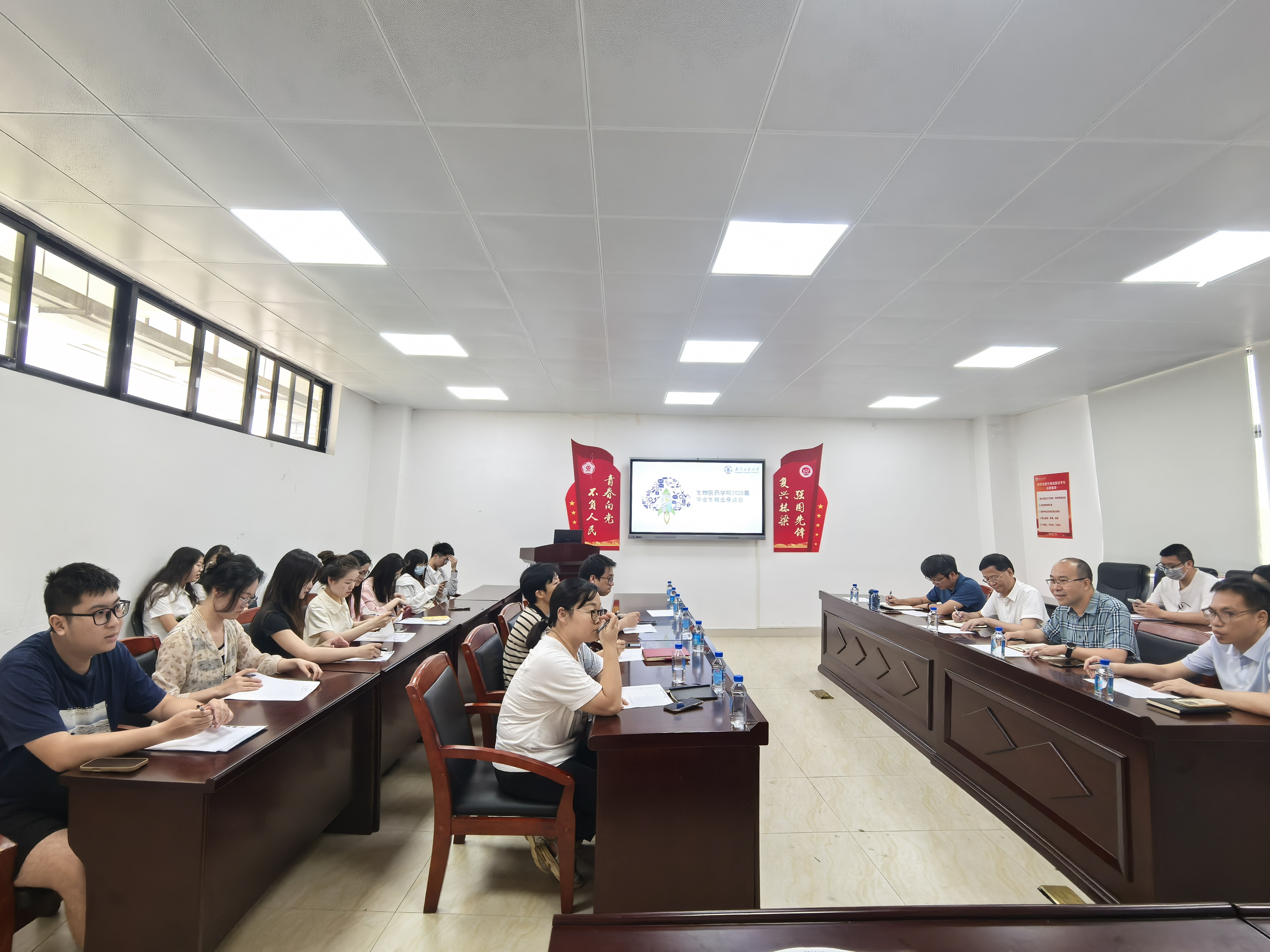 为扎实推进2025届本科毕业生伟德国际1946,切实解决未就业学生实际困难,全力推进bevictor伟德官网毕业生伟德国际1946,bevictor伟德官网于6月12日下午在科技南楼203-4党建活动室,召开了2025届本科、研究生毕业生座谈会,会议通过“倾听需求-精准指导-资源赋能”全链条帮扶,助力毕业生走稳职业发展第一步。学院党委书记徐向东、副院长卢宇靖、党委副书记张智、副院长叶金星,制药工程系副主任周丽华、生物工程系主任曾骥、生物医学工程系教师穆云萍,毕业班辅导员、班主任及本科、研究生毕业班学生代表参加了本次座谈会。