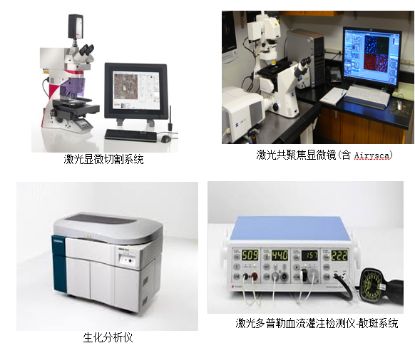 药物动力学与药效学作为药品研究的两大内容,阐述了机体对药物的代谢情况和药物对机体的不同作用。药物作用的性质首先取决于药物的化学结构(基本骨架、活性基团、侧链长短及立体构形等因素);其次从药理学角度来说,药理效应是机体细胞原有功能水平的改变,药物作用机制(mechanism of action)要从细胞功能方面去探索。主要包括:理化反应、参与或干扰细胞代谢、影响生理物质转运(无机离子、代谢物、神经递质、激素)、酶活、细胞膜的离子通道、核酸代谢、免疫机制、非特异性作用、受体等。最后,药物必需作用于动物体才能探究药物对机体的治疗作用和存在的不良反应。细胞实验为动物实验提供了理论基础,动物实验的某些现象又为细胞水平研究提供了实际参考。将两者结合,建立体外和体内动物模型,对评价药效学和药动学具有重要意义。而动物模型的建立,就必须拥有精确且可靠的医械设备。随着新药品不断涌现,其不良反应和药械安全事件也随之增加。实验室药学研究作为临床前药物试验的必经之路,做好药品不良反应和医疗器械不良事件监测工作,关乎药品是否可以进入临床试验,关乎病人身体健康和生命安全,更是医药研究者的责任心之所在。为此,建立一套系统稳定的药械评价系统,对研究动物实验具有重要的研究价值和使用价值。平台设备包括:膜片钳、流式细胞仪、激光共聚焦荧光扫描显微镜、细胞外流量分析仪、生物大分子相互作用仪、激光显微切割系统、全自动轮转式切片机、冰冻切片机、全密闭自动脱水机、多功能自动染色机、核磁共振仪、小动物核磁系统、激光多普勒散斑系统、大小鼠PFT肺功能检测系统、清醒大小鼠NAM肺功能检测系统、肺吸入塔等。