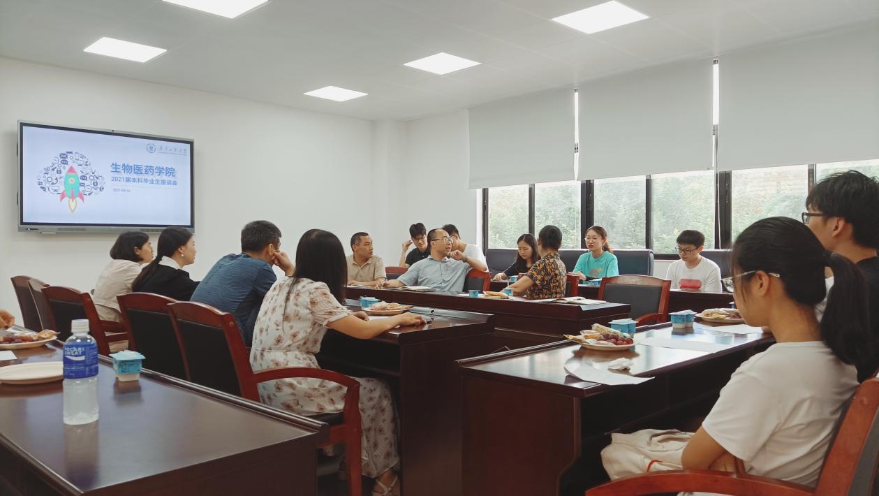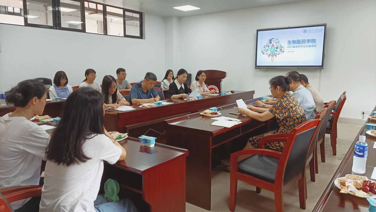 为深入开展党史学习教育工作,贯彻落实“学党史、悟思想、办实事、开新局”工作要求,更好地促进bevictor伟德官网毕业生伟德国际1946、安全教育工作,5月14日上午于科技南楼党建活动室,召开了2021届本科毕业生座谈会,学院党委副书记张智、副院长郑杰、制药工程系副主任丁金龙、生物工程系系主任傅明辉、制药工程1班班主任汤亚东、17级辅导员万敏、16级学生梁锦慧以及25名本科毕业生代表参加,座谈会由辅导员万敏主持。