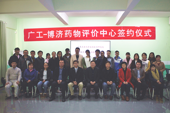 12月19日下午,广东工业大学生物医药研究院—广州博济医药生物技术股份有限公司药物评价中心签约仪式在广东工业大学大学城科技南楼举行。广州博济医药生物技术股份有限公司总经理王廷春先生、人力资源总监刘菁纯女士、化药研究部总监王栋、I期临床部部长梁翅勇先生,生物医药研究院谭文院长以及全院师生共同出席了活动。 活动上,谭文院长首先代表广东工业大学生物医药研究院对药物评价中心的成立表示热烈的祝贺,表示该评价中心的成立有利于推动药物临床试验及仿制药一致性评价工作,促进双方在生物医药技术领域的科学研究,希望通过共建药物评价中心,对接博济医药生物公司的药物评价研究及服务资源,进一步加强双方在药物评价方面的研究合作和人才交流。 广州博济医药生物技术股份有限公司总经理王廷春先生表示博济医药是一家从事新药研发外包服务的新型高新技术企业,药物评价服务平台是其五大服务平台之一,希望双方在共建药物评价中心的基础上,展开优势互补、平等互利的长期合作,开展国内领先的科学研究,同时还能依托该中心,进一步提供相关职业教育培训,为研究院学生创造就业机会。